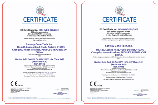 5月23日,东升国际官网生物全资子公司圣维基因研发的乙型肝炎病毒、丙型肝炎病毒、人类免疫缺陷病毒(1+2型)核酸检测试剂盒(PCR-荧光法),简称血筛核酸检测试剂盒,成功通过欧盟公告机构认证(CE List A),这是继乙肝、丙肝和艾滋三款核酸检测产品后,东升国际官网生物拿下的第四个CEList A认证。